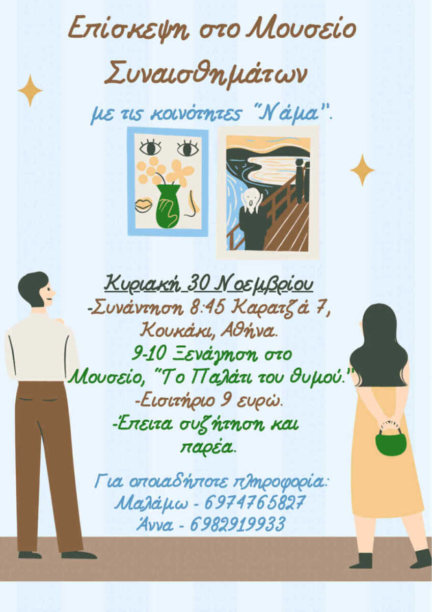 Η Άννα λοιπόν μας καλεί σε μια ξεχωριστή επίσκεψη και ξενάγηση στο Μουσείο Συναισθημάτων με τις κοινότητες «Νάμα» την Κυριακή 30 Νοεμβρίου.
